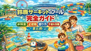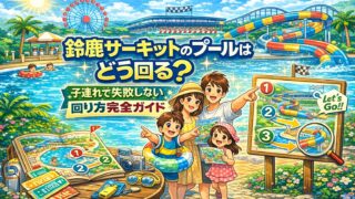 鈴鹿サーキットのプールを子連れでどう回るべきかをやさしく解説。朝イチの動き方、混雑日のコツ、年齢別の回り方、休憩タイミング、遊園地との組み合わせ方まで初めてでも分かりやすくまとめました。