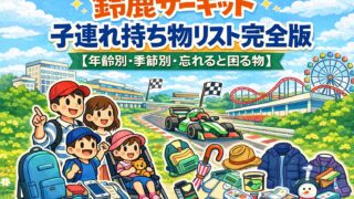 鈴鹿サーキットは持ち物で満足度が大きく変わる。子連れで「これ忘れると困る」必須アイテムを、年齢別・季節別・天候別に完全整理。初めてでも安心のチェックリスト付き。