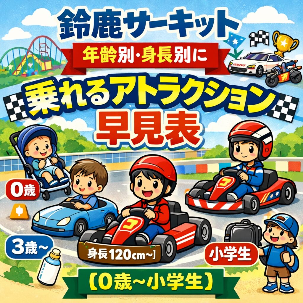 鈴鹿サーキット|年齢別・身長別に「乗れるアトラクション」早見表【0歳〜小学生】